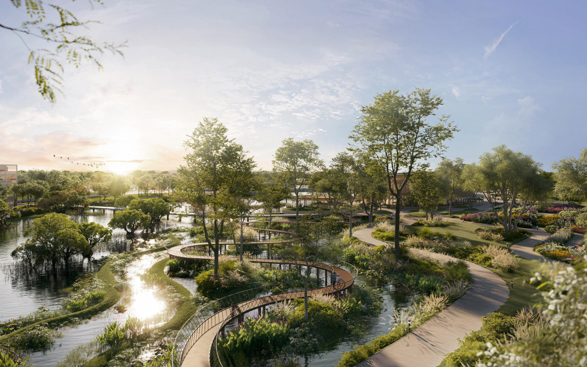 Tại đây, những công viên không chỉ là mảng xanh điểm xuyết trong quy hoạch, mà trở thành linh hồn của toàn bộ không gian sống. Rừng ngập mặn, thảm thực vật ven biển và hệ sinh thái đất ngập nước được tái sinh một cách có chủ đích, tạo nên một bức tranh sinh thái hài hòa và bền vững.